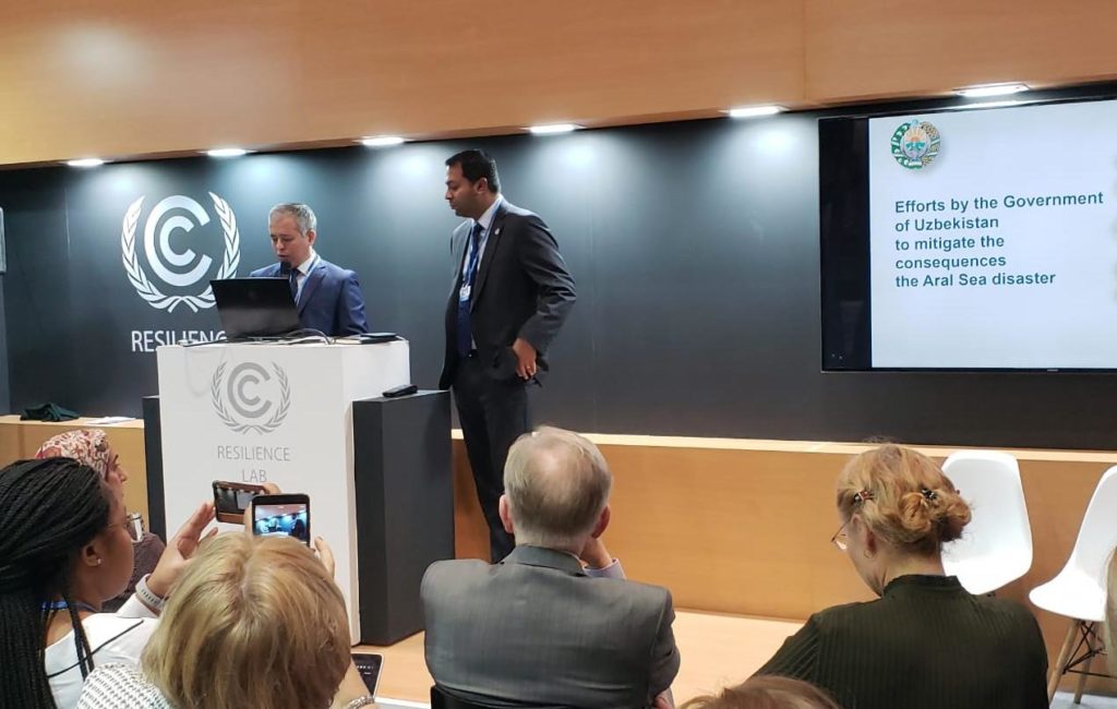 Work aimed at achieving resilience to climate change requires creative thinking and a willingness to apply new approaches and methods. Taking this into account, the organizers of the conference presented the Resilience Lab. This site has become the venue for events related to sustainable development. During the conference, representatives of Central Asia spoke on this global platform twice. On December 7, 2019, the first deputy general director of the Center for Hydrometeorological Service of Uzbekistan Bahriddin Nishonov gave a speech about the work of the Government of the Republic of Uzbekistan aimed at mitigating the effects of environmental disasters in the Aral Sea basin.
