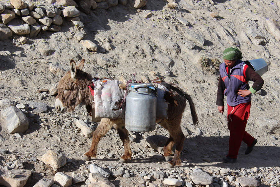 Photo: Water crisis. The photo was taken in the Roshkalinskydistrict of the Republic of Tajikistan. Residents have to go down from houses and walk 10 kilometers to fill their flasks with water from the Panj River. Photo by Maksud Gayesov.