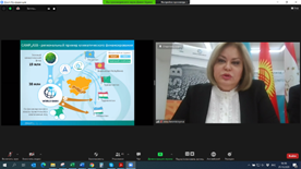 Ms. Irina Bekmirzaeva, Coordinator of the Regional Coordinating Group of the Project "Climate Adaptation and Mitigation Program for Aral Sea Basin" (CAMP4ASB), touched upon increasing access to climate knowledge and data for key stakeholders in Central Asia. In her speech, Ms. Bekmirzaeva noted the CAMP4ASB project is an example of a regional project that includes both a "soft" component to support regional dialogue, improve access to information, increase capacity, and a "hard" component, which finances climate projects based on the introduction of new technologies in Tajikistan and Uzbekistan. She briefly presented the main results and achievements in the "soft" component of the project implemented by the Regional Environmental Centre for Central Asia.