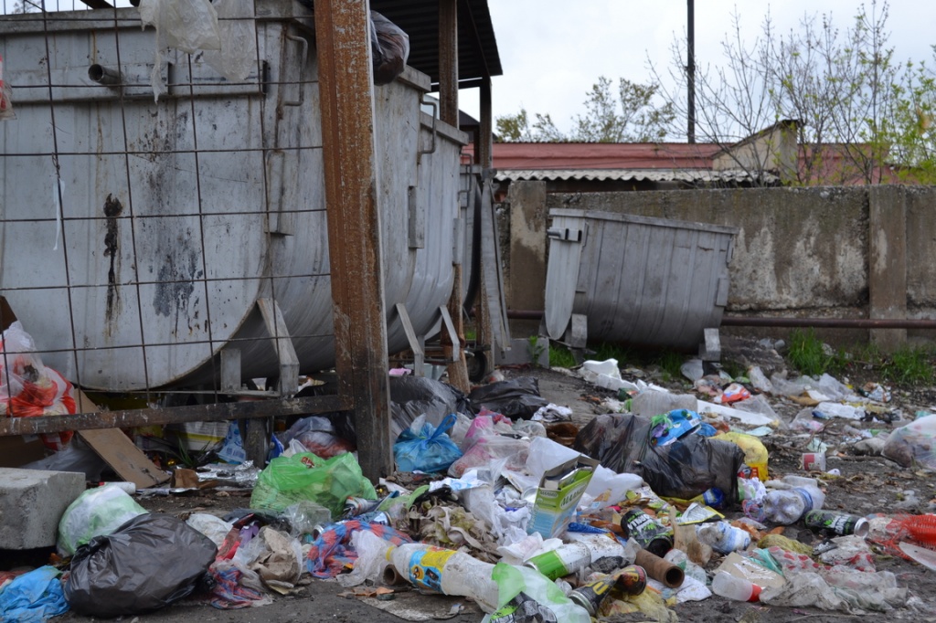 На этой фотографии вы видите привычную для нашего времени картину. Забитые доверху баки для сбора отходов во дворе многоквартирного дома и валяющийся вокруг них мусор.